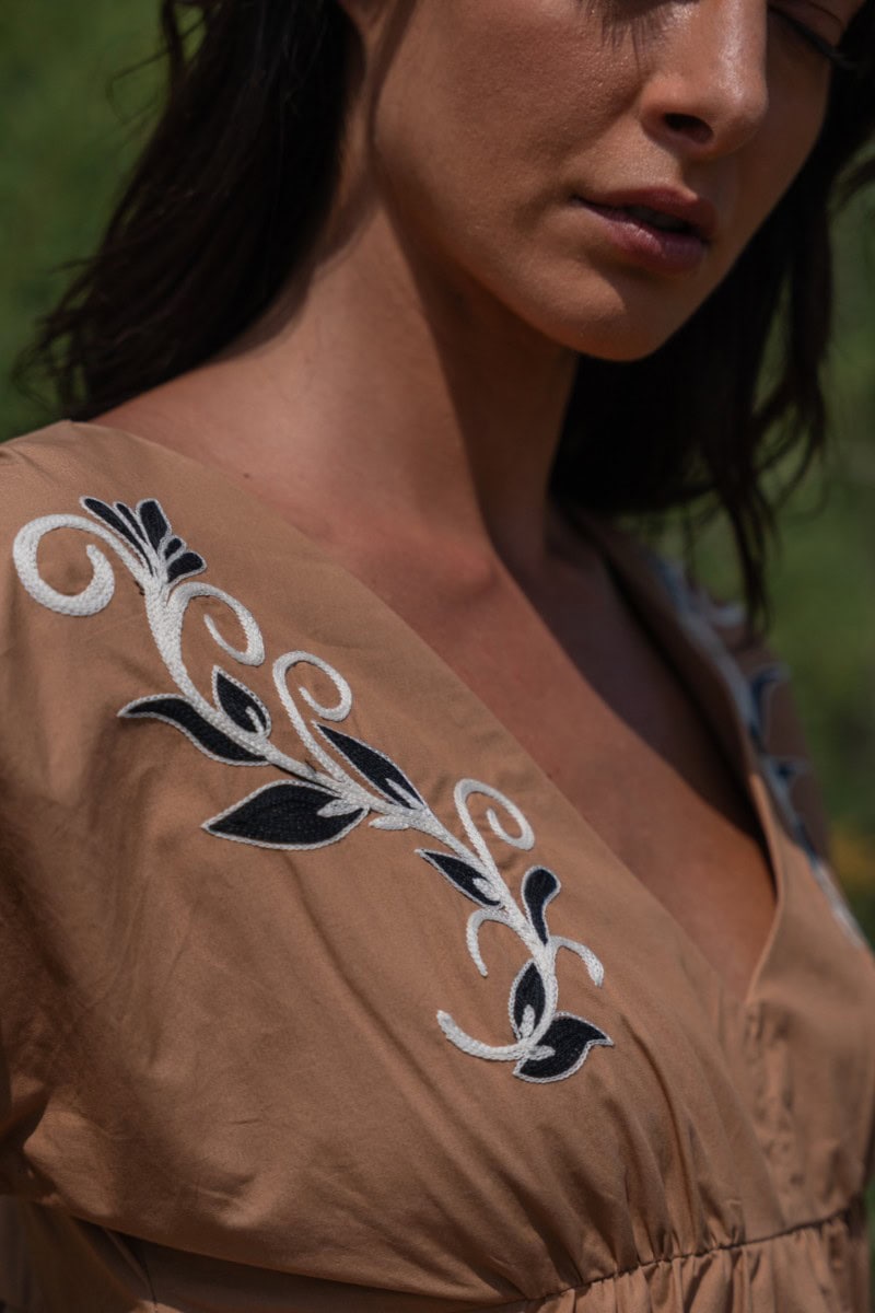Les textures naturelles sont les toiles des broderies uniques qui sont également la marque de fabrique de la marque ADA KAMARA.